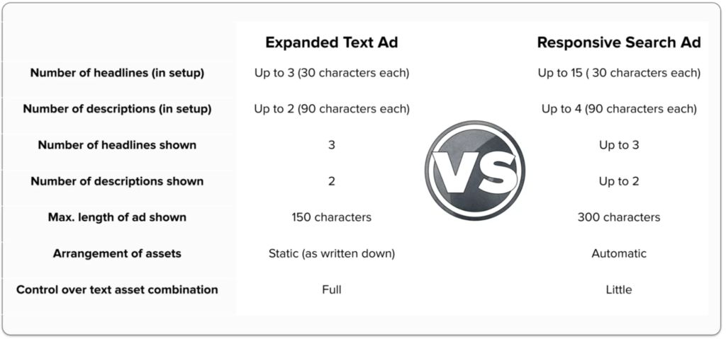 An article from Smarter Ecommerce outlined the differences between RSAs and ETAs well: